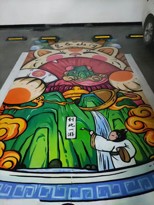 下面是我们济南印象墙绘公司为海信九号(山东同信仁和公司)画的车位彩绘,共计六副,每一副寓意不同。有的是国潮风格,有的80,90后喜欢的经典卡通形象,艺术的延伸让您公司的车位别有一番滋味,提升公司形象。